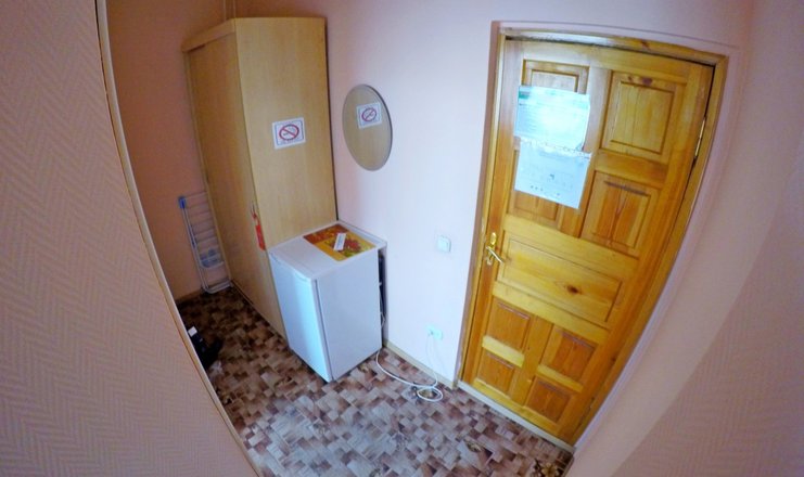 В номере: стол, 1 стул, встроенный шкаф-купе, телевизор, холодильник, электрочайник, фен, односпальная кровать.