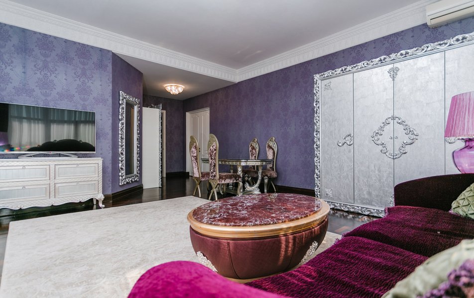 В номере: диван, комод, набор мягкой мебели, прикроватные тумбочки, стол, стулья, шкаф для посуды, кондиционер, телевизор, холодильник, электрочайник